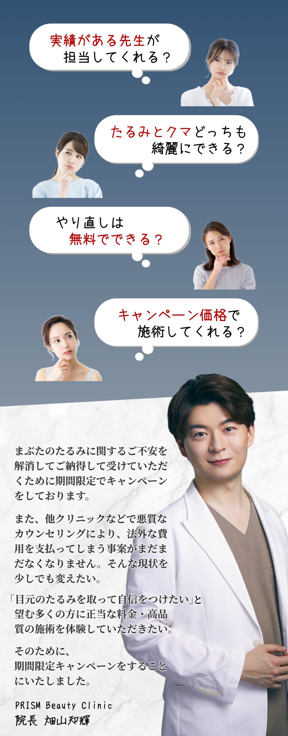 美容外科施術は全て院長の畑山が担当させていただきます。